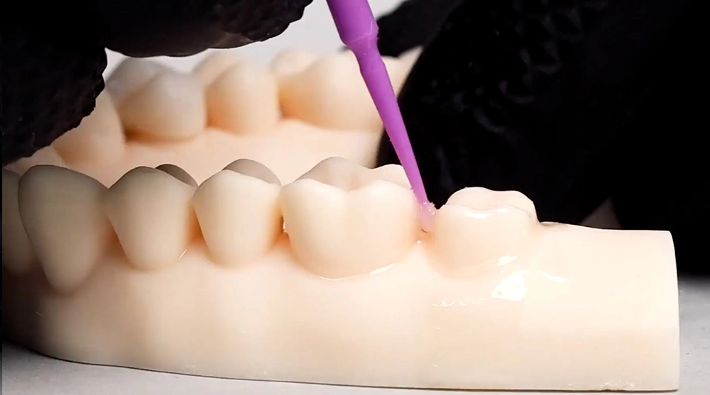 Seat the restoration using firm finger pressure to ensure proper fit.