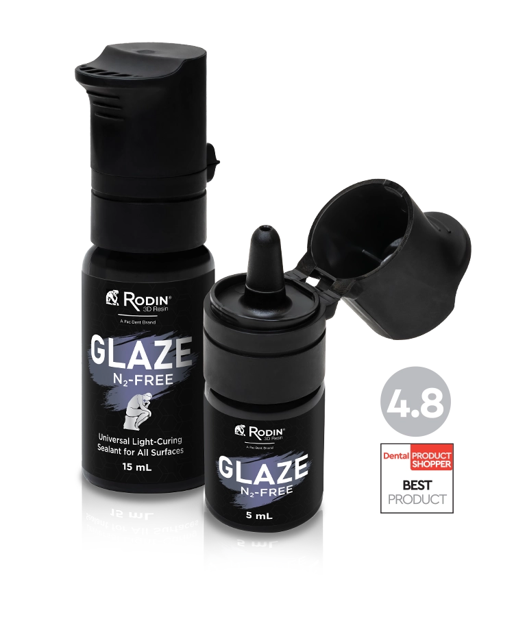 Independent third-party testing shows that when applied after printing and before final curing, Glaze N₂-Free achieves a high gloss finish of 78 units with minimal polishing required. Wear simulation demonstrates durability up to 350,000 cycles—equivalent to about 2.5 years of clinical use—ensuring a strong, esthetic finish without the need for specialized curing equipment.